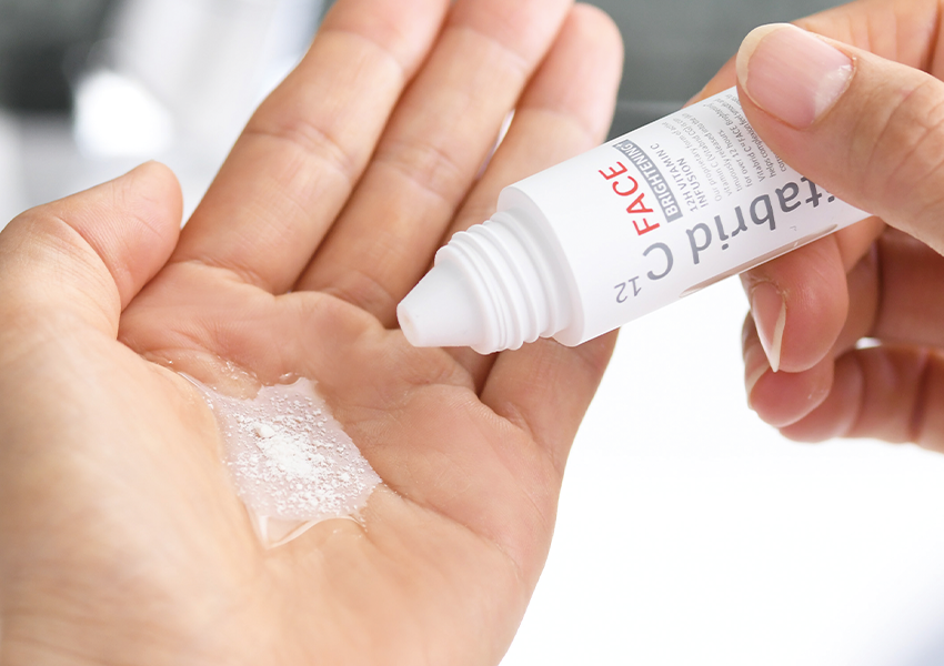そこでオススメなのが「ビタブリッドC フェイス」です。使う直前に水や化粧水に混ぜるだけの簡単ケアなのに、長時間フレッシュなビタミンCが肌に留まる