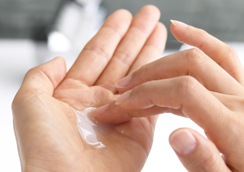 使う直前にパウダーを手のひらに5、6振り取り出して