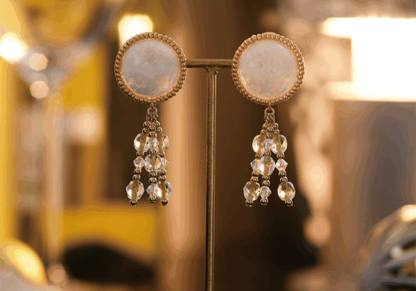 満月の夜に星が降り注ぐロマンチックな夜をイメージしてデザインされた、イヤリング・ピアス「星降る夜」。 花々のような愛らしいデザイ...
