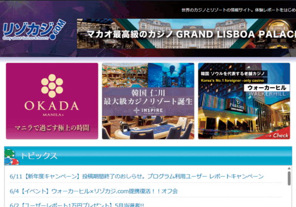 カジノリゾートを120%楽しむための情報サイト「リゾカジ.com」。 日本からアクセスの良いカジノ専用のプランも多数ラインナップ...