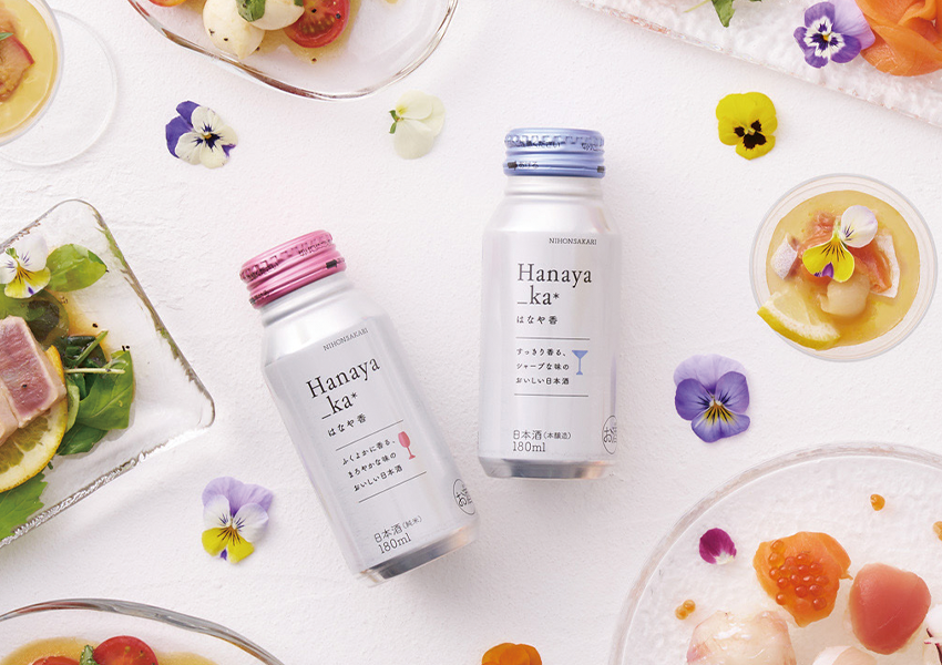 オシャレなお店で食事をしているかのような気分に酔える日本酒「Hanaya_ka* はなや香」。可愛いアルミボトルはそのまま食卓に置いてもテーブルを華やかに演出してくれて、ワイングラスに注げば華やかな香りを存分に楽しめます。