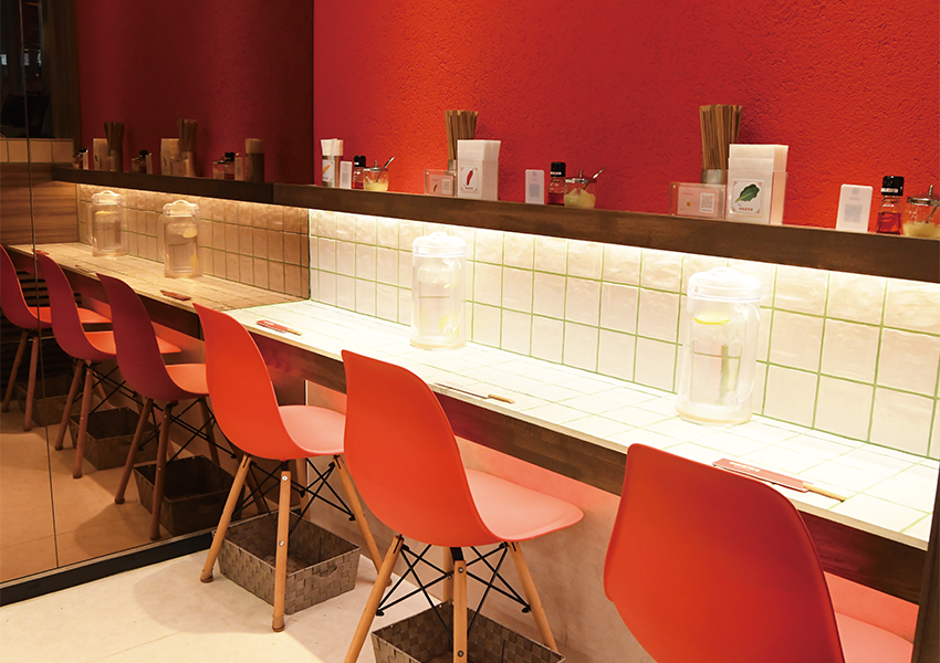 また、行くだけで元気になれそうな赤を基調にしたポップな店内には、コンパクトながらカウンター席があるのもうれしいポイント。