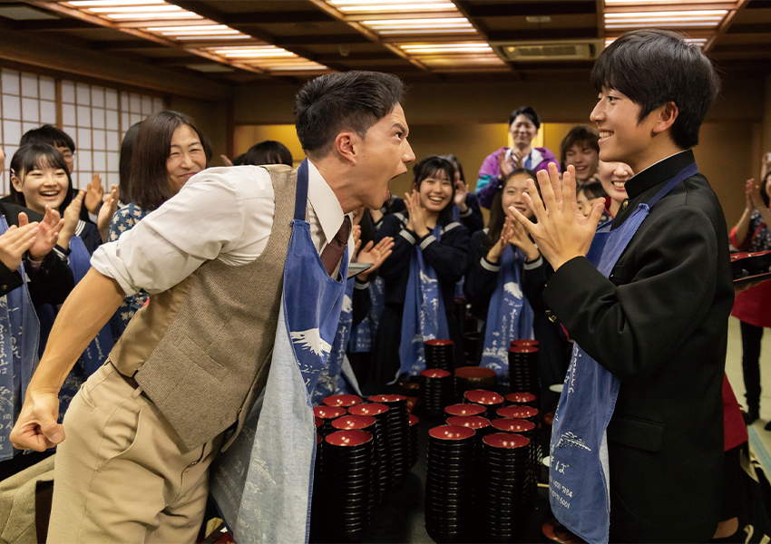 ─── そう、今回の舞台は修学旅行。函館の教室を飛び出し、青森・岩手へと旅に出る甘利田先生と生徒たち。旅先でどんな食に出会うのか、ライバルの粒来ケンとの「どちらが給食をおいしく食べるか」対決の行方は? さらに、今回は旅先で出会った他校との「給食交流会」が勃発…と、見どころが満載なのだが、中でも大きな話題となっているのが、かつてヒロインを演じた御園先生との再会だ。