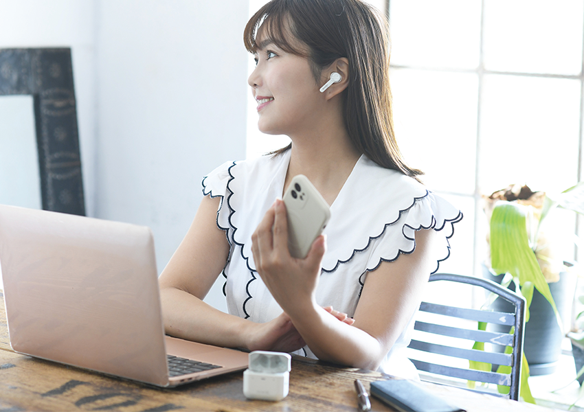 Bluetooth 5.3を搭載し、iOSやAndroidデバイスと簡単に接続。スマートフォンやパソコン、タブレット、テレビなど、複数デバイスに同時接続できて、音を聞きたい端末への切り替えもすばやく対応してくれ、音楽再生から動画視聴、通話までを一台でカバーしてくれる多用途さも魅力です。