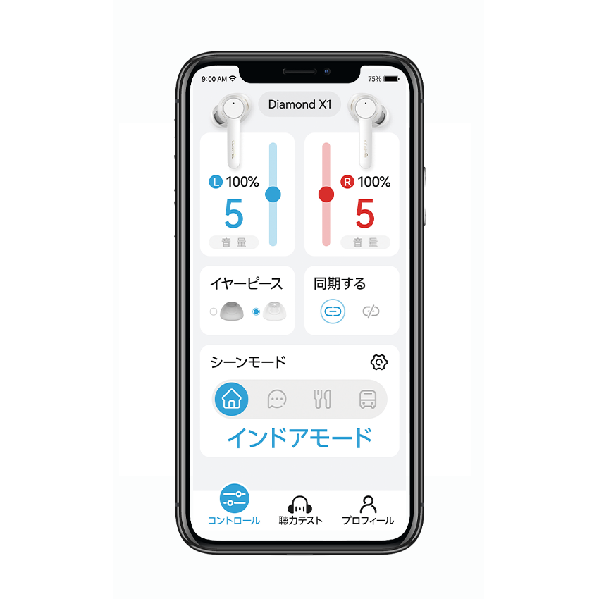 聴力診断や音量調整、その場に合わせた設定もアプリとの連動で簡単に