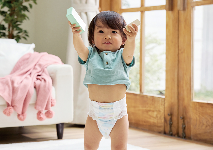 赤ちゃんの個性や成長スピードはさまざま。だからこそ、簡単にサイズ調節ができて、どんなときでもサッと履かせられるおむつは理想的。