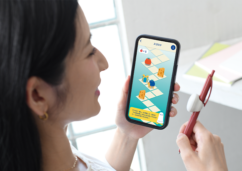 そんな大人をサポートしてくれるのが、「コクヨ」の「大人のやる気ペン」です。いつものペンに、わずか8gの超軽量デバイスをワンタッチで装着するだけで、勉強時間を自動で記録・分析が可能に。学習後はアプリにデータ転送すると、勉強量をグラフやカレンダーで見える化してくれます。さらに「やる気ペン」の魅力は、諦めそうな気持ちに寄り添い、背中を押してくれるところ。アプリ内では、勉強量に応じて𠮟咤激励メッセージが届いたり、アバターがスゴロクを進んだり、アイテムを獲得したりとモチベーション維持の工夫が盛り沢山。他のユーザーたちと巡り合える仕掛けもあり、仲間の存在を感じながら学べるのも心強いです。