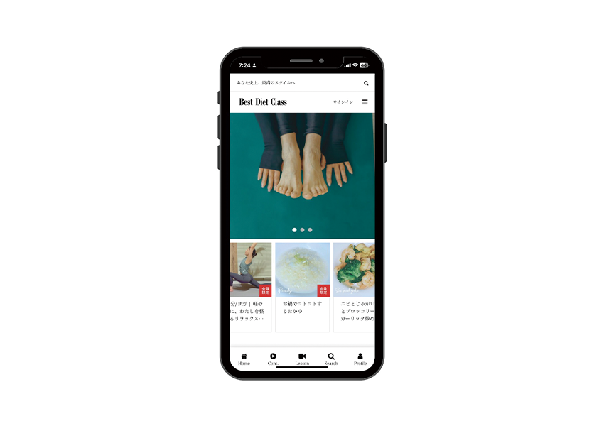 毎日の食事管理から、ヨガやピラティス、フィットネスなど、各種専門インストラクターによるオンラインレッスンを、プロ監修のもとにサポートしてくれるサブスクサービスです。