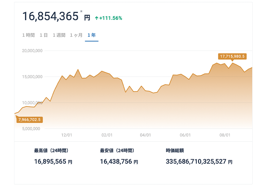 その後、大企業や投資家が参入し2021年には史上最高値を記録。昨年9月から現在までのチャートでは約2.2倍に。最近では上場投資信託の承認により、株式や債券と同じように投資対象として扱いやすくなっています。