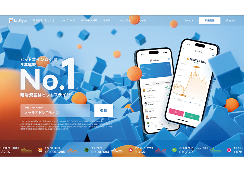 暗号資産に興味を持ち始めたとき、まず気になるのは、「どの取引所を選ぶべきか」という点。「bitFlyer」は、ビットコイン取引量で9年連続 国内No.1※1を達成し、今日本で最も多くビットコインが取引されている取引所です。