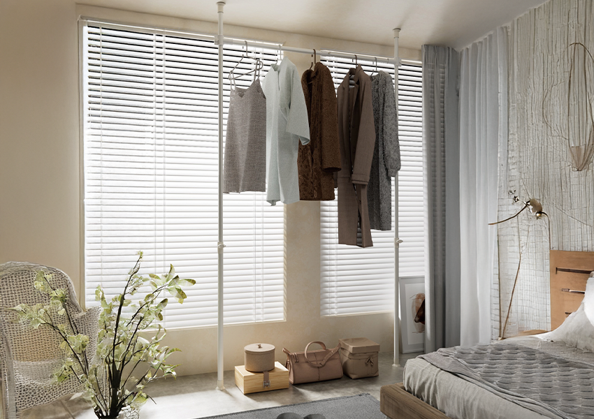 女性一人でも設置可能!空間を美しく整える、突っ張りハンガーラック
