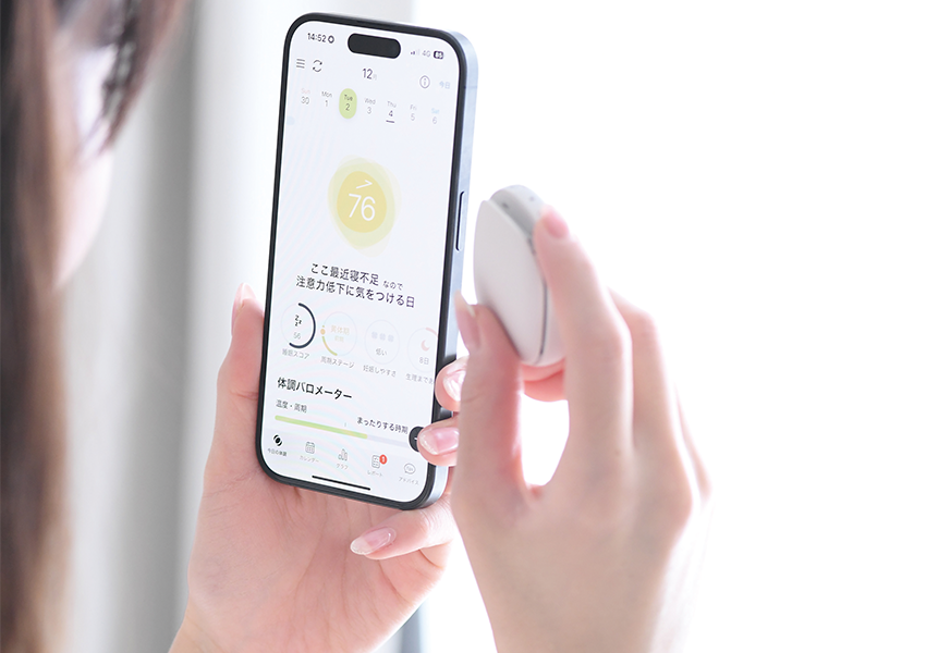 女性特有の不調に寄り添い、生理周期や睡眠の量と質、低温期・高温期※など、体調に関するさまざまなデータを測定し、今の体の状態を教えてくれるだけでなく、その日の体調に合わせたアドバイスや体調の予測、原因分析まで、トータルケアを叶えてくれる「体調ナビゲーションサービス」です。