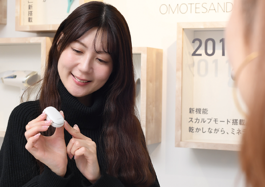 1ヶ月間「RizMo」を体験して、「パナソニックビューティ表参道」に訪れた、弊誌モデルの穂奈美さん。