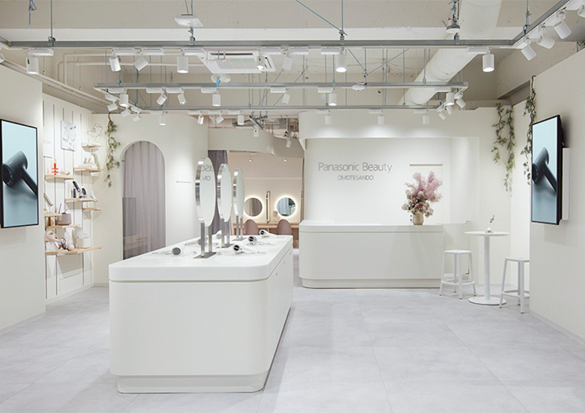 「RizMo」をはじめ、美顔器やドライヤーなど、パナソニック製のアイテムを展示。使い方レッスンやセルフ体験も実施しています。