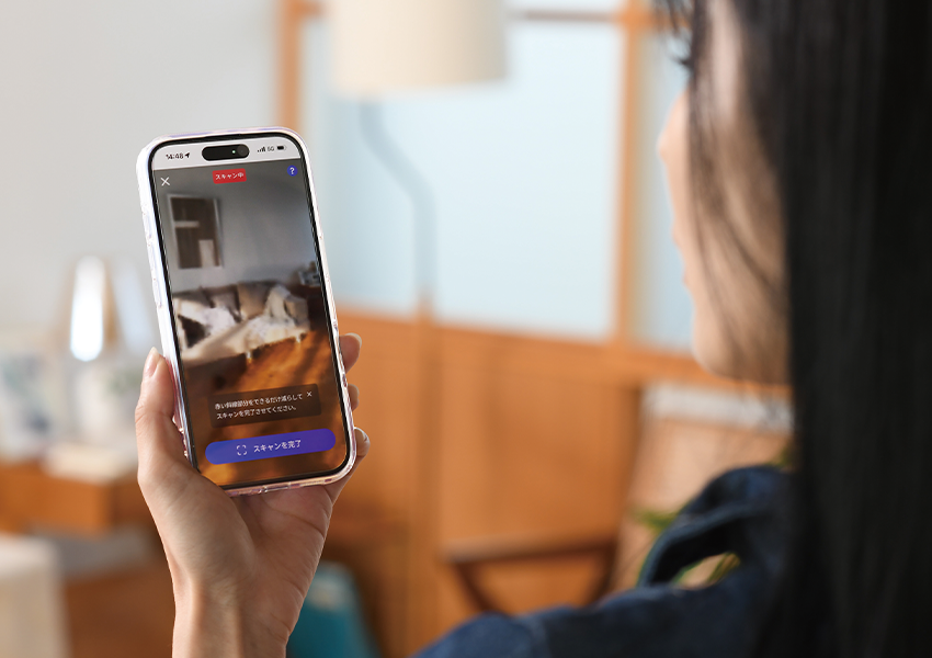 24時間いつでも利用できる「ぐるっとAI見積り」で、お部屋を3Dモデル化したデータをもとに、AIが家財量を自動で精算してくれます。