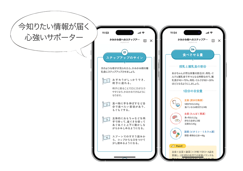 【今知りたい情報が届く心強いサポーター】離乳食準備が始まる生後4ヶ月頃から成長に合わせて届くタイムリーな情報