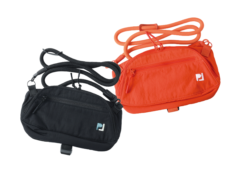 「サコッシュ」は、どんな服装にもパッと色が映えるオレンジカラーと、シンプルなお洒落さを演出するブラックの2色展開。太めのショルダー紐がお洒落にアクセントを加えつつ、肩の痛みも軽減。