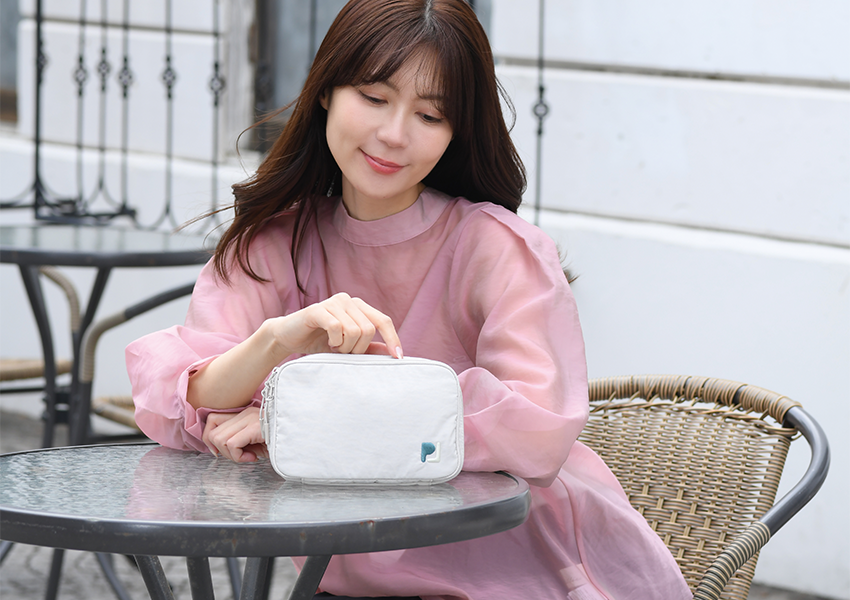 表と裏2つのポケットには、メッシュポケットやゴムバンドなど、小分けに整理できる仕切りデザインが多く施されているので、日焼け止めや制汗スプレー、化粧直しなど、細々としたアイテムが必要な、春から夏にかけてのお出かけにも、ポーチ1つで対応してくれます。
