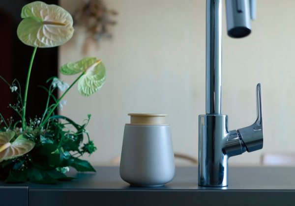 高品質な美濃焼のボディが上品な雰囲気を演出してくれる、北欧テイストのディスペンサーから、スポンジ押し当てて洗剤を出せる「mino...